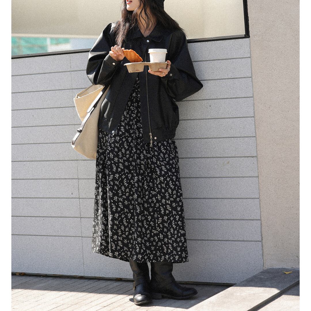 一枚でコーデが完成し、フラットシューズやブーツと合わせて春や秋のデイリーからお出かけまで幅広く活躍する一着です。