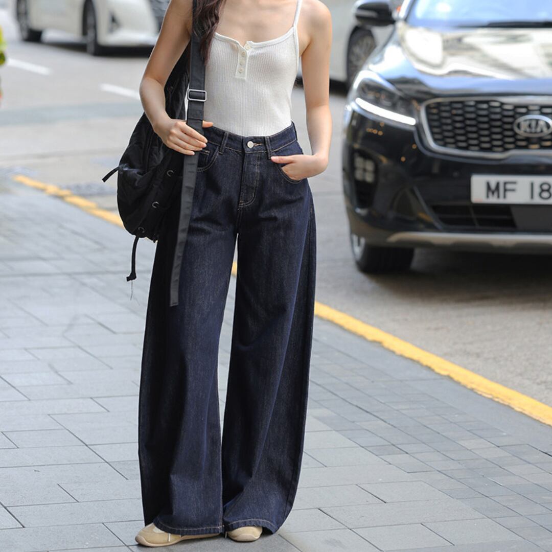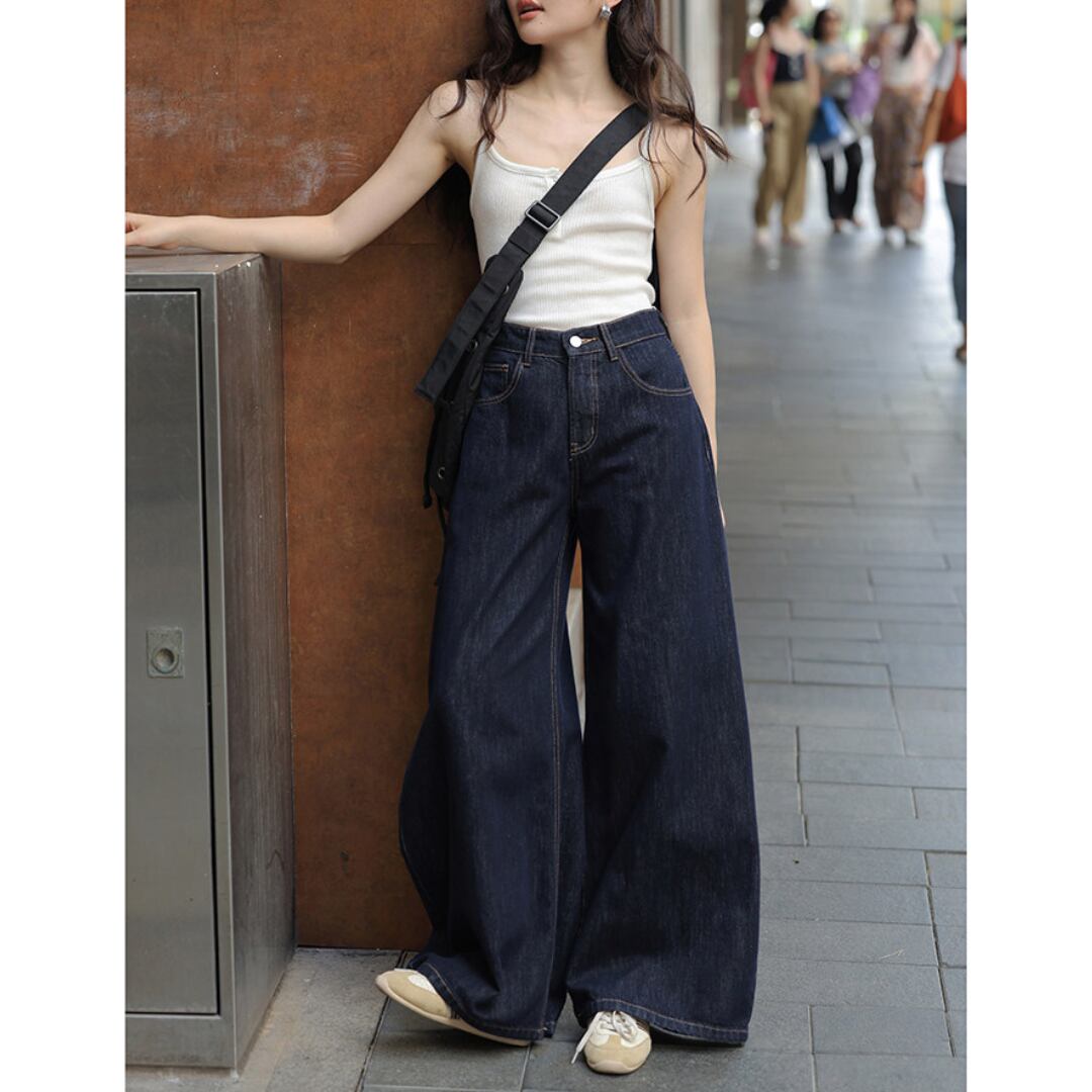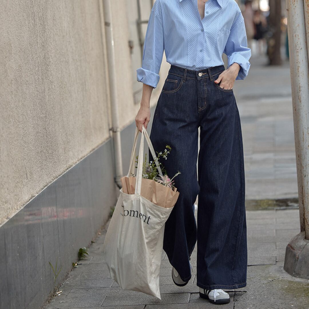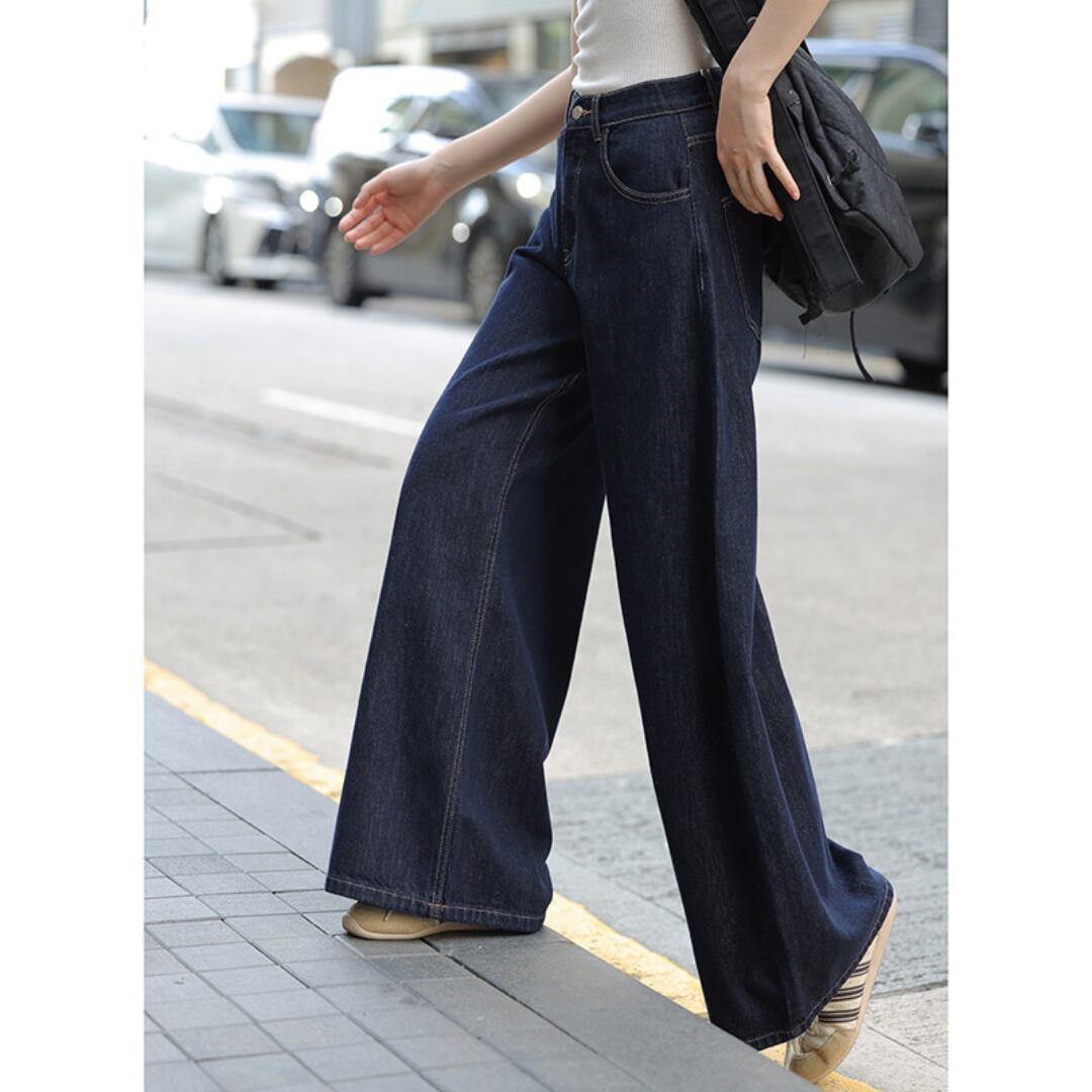 ゆったりとしたワイドシルエットとハイウエストデザインが特徴で、脚のラインを美しく見せながらリラックス感のある履き心地を叶えるデニムパンツです。