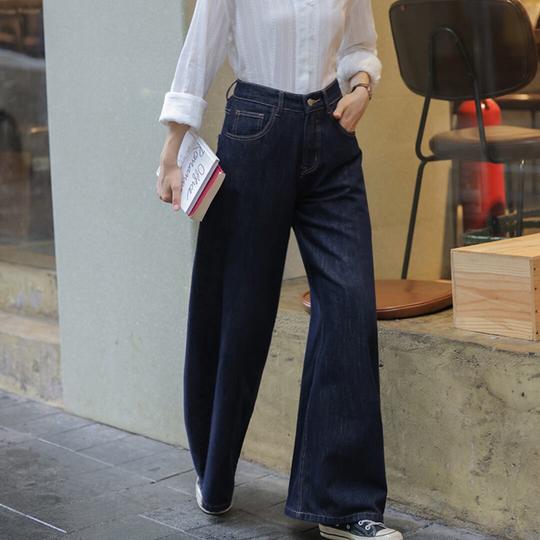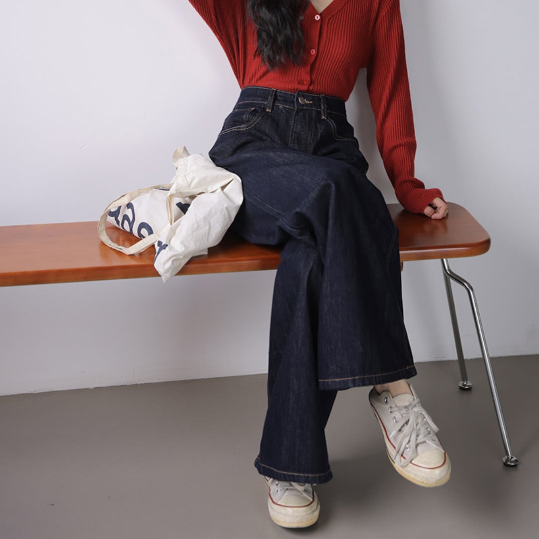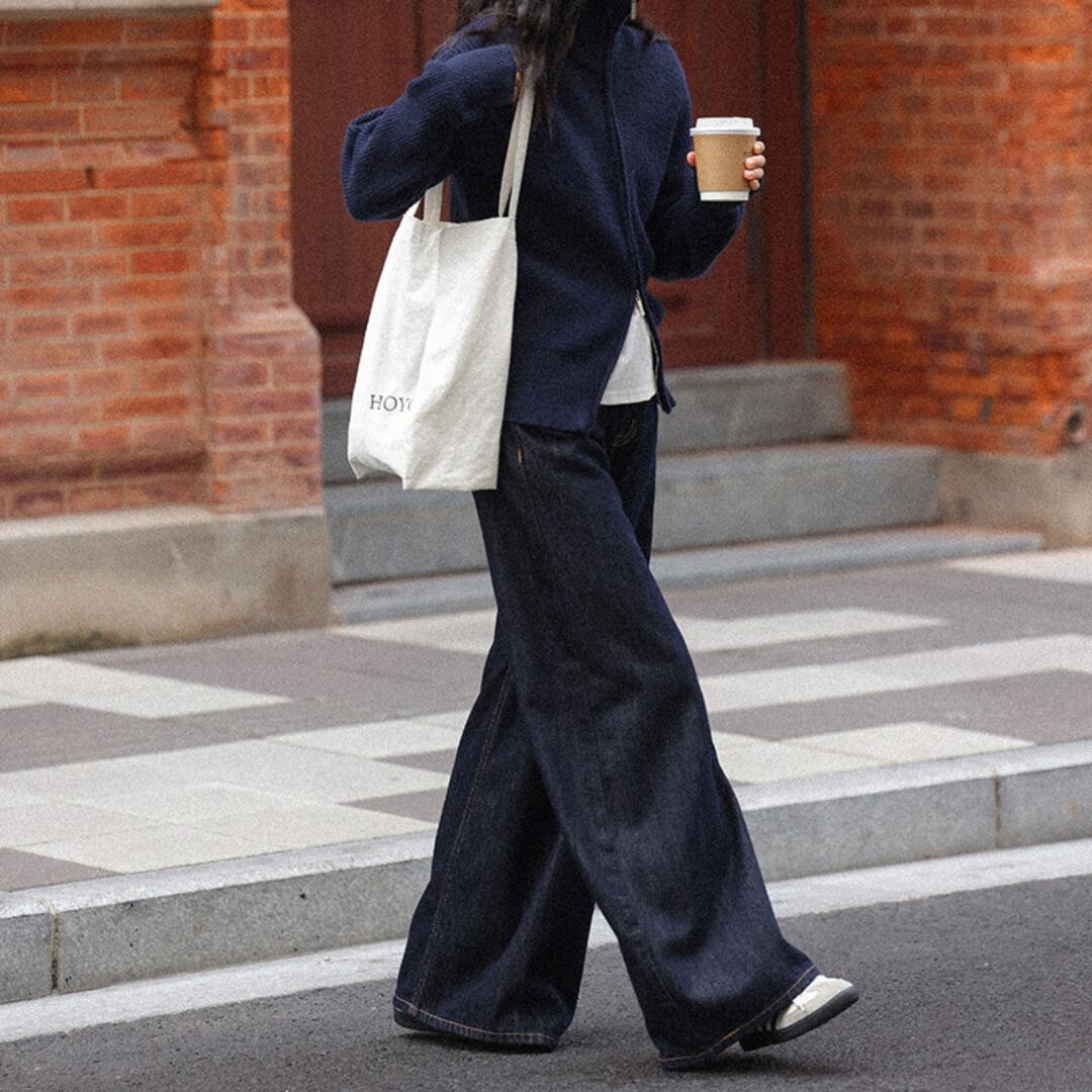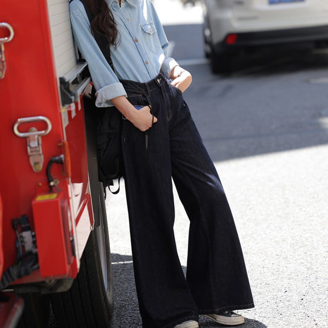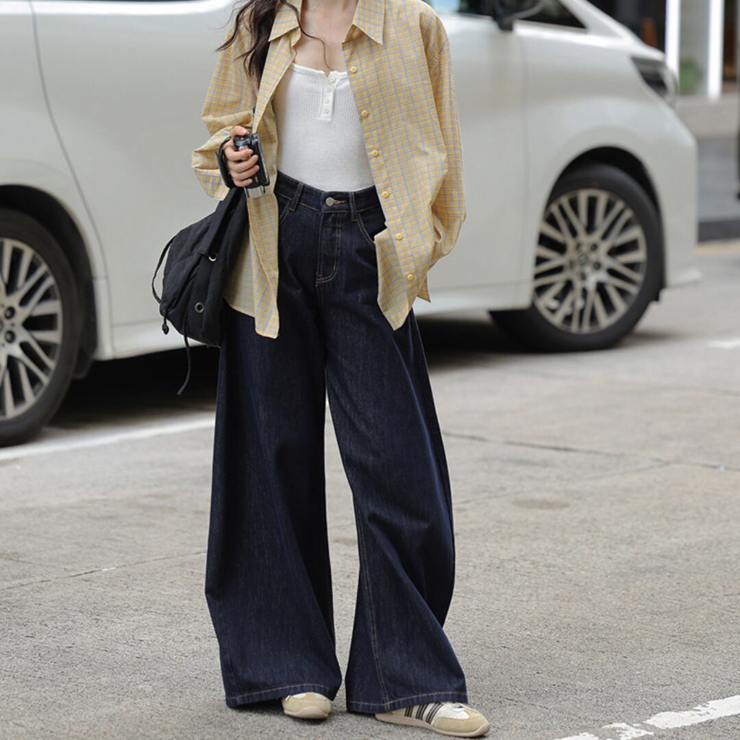 ゆったりとしたワイドシルエットとハイウエストデザインが特徴で、脚のラインを美しく見せながらリラックス感のある履き心地を叶えるデニムパンツです。