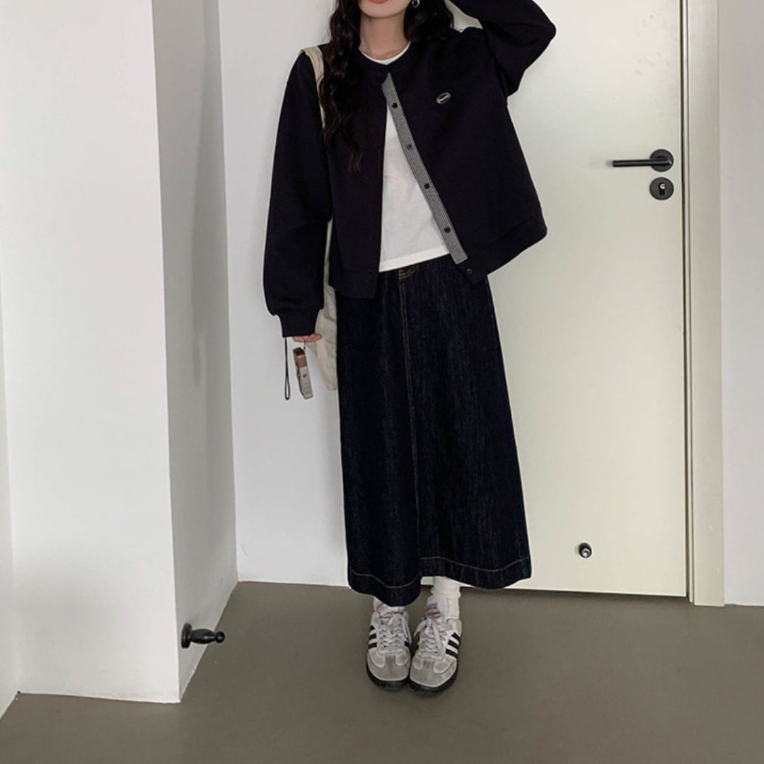 すっきりとしたノーカラーデザインと程よくゆとりのあるシルエットが特徴で、シンプルながら洗練された印象に仕上がるショート丈ジャケット。