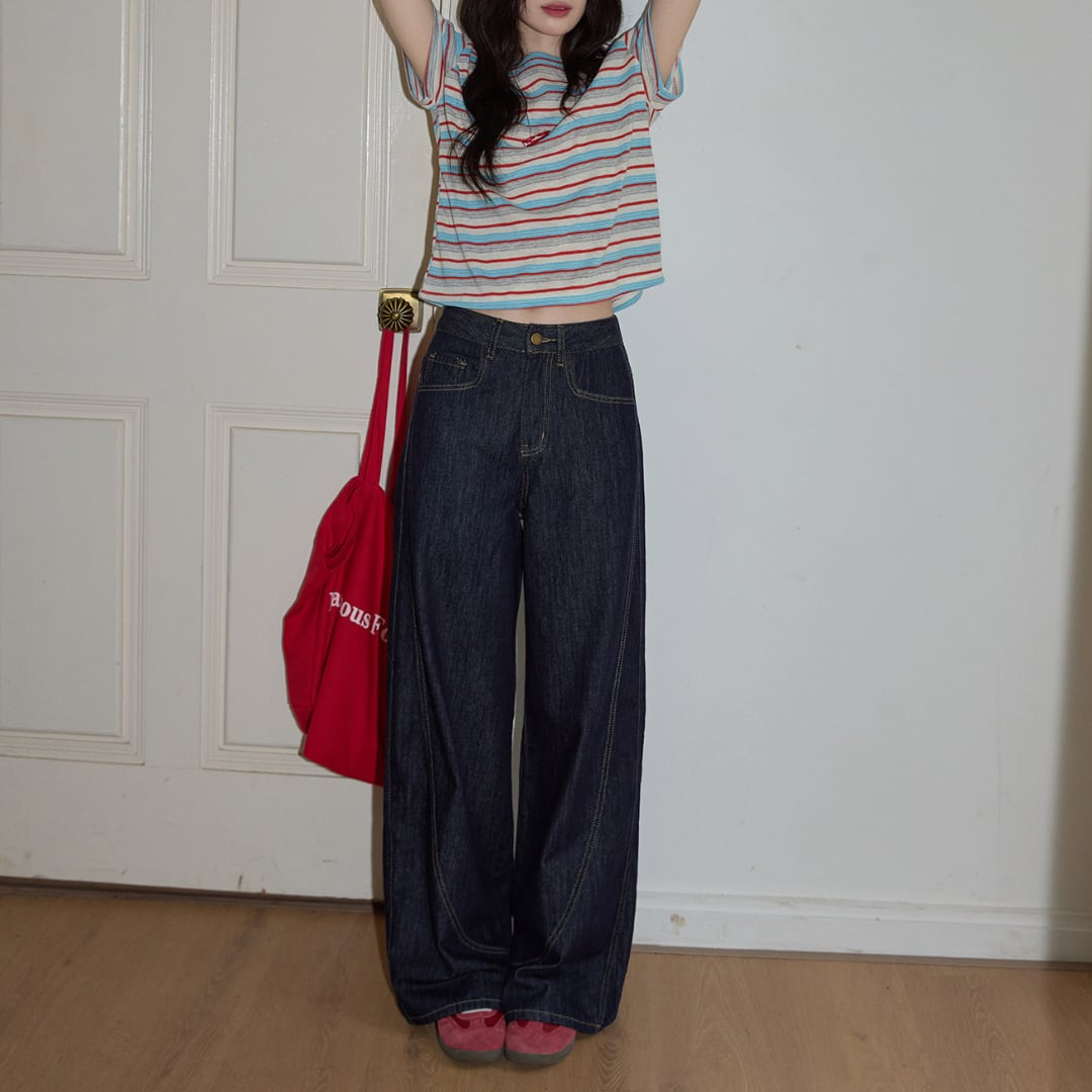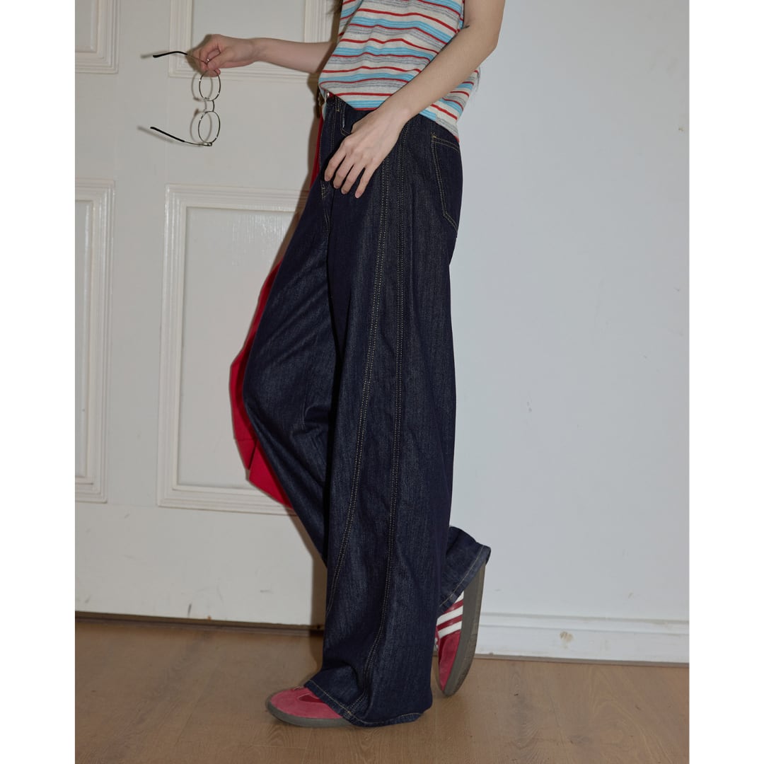 center stitch wide denim pants