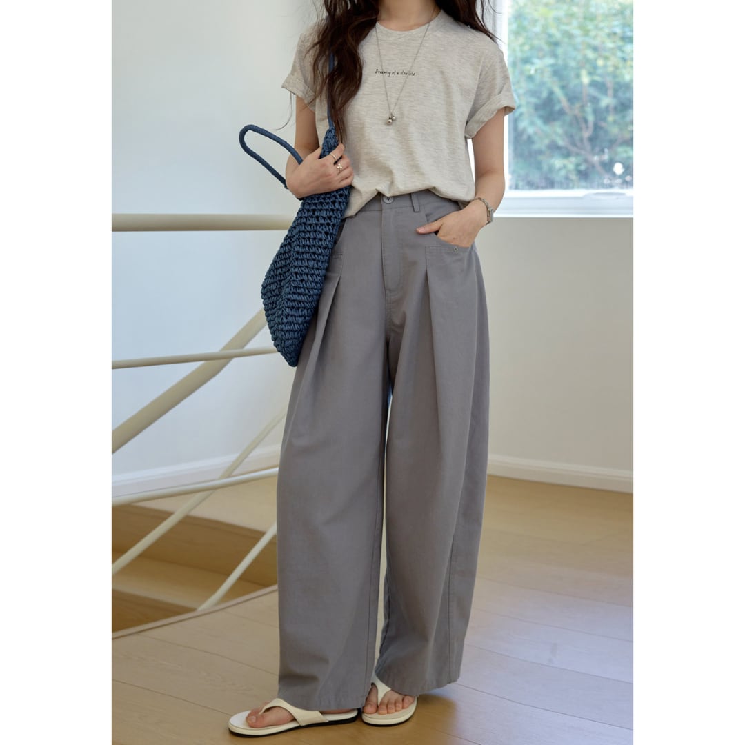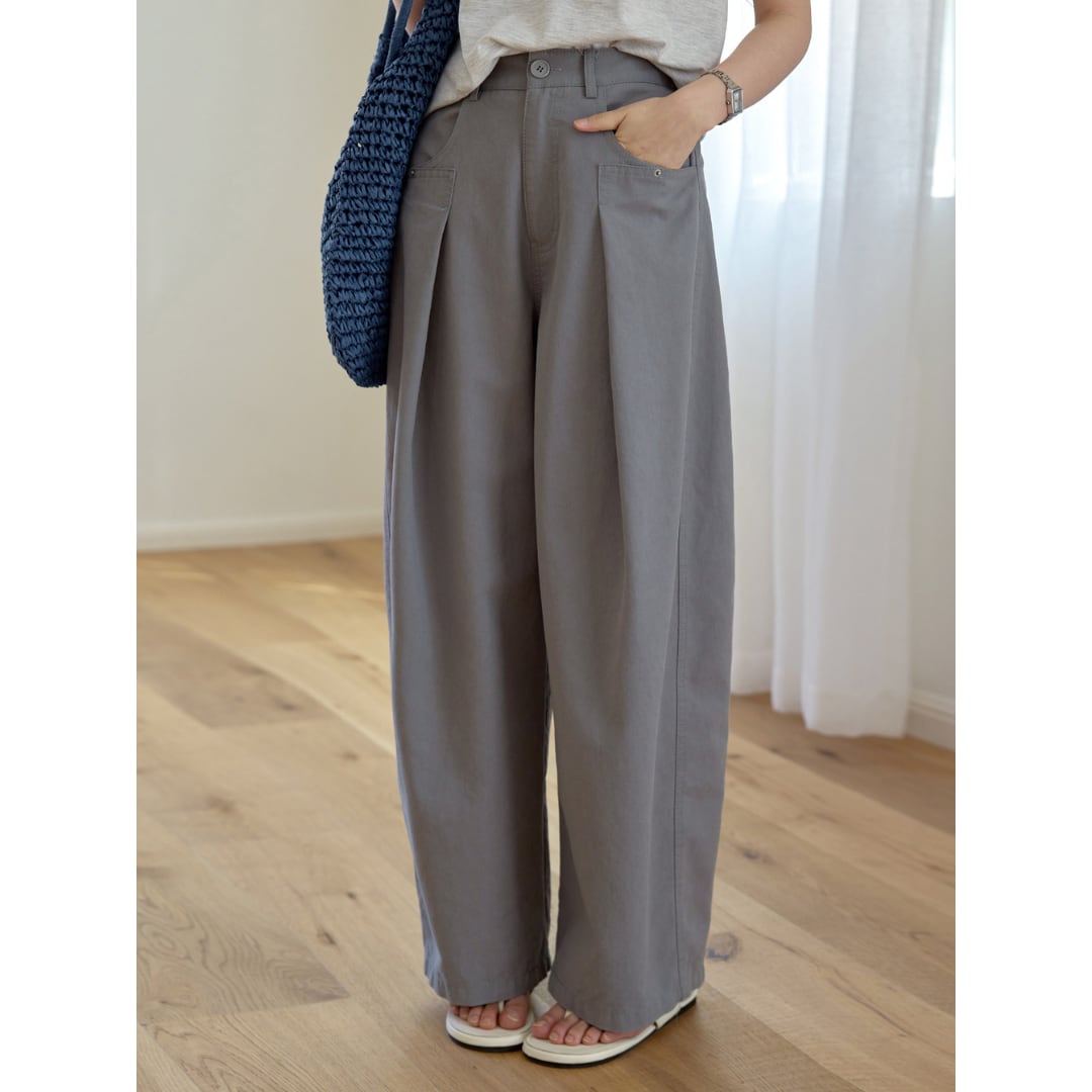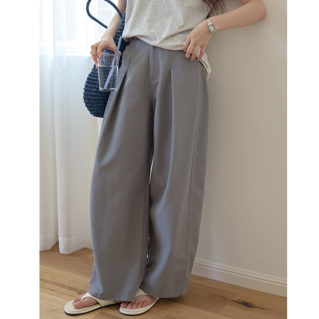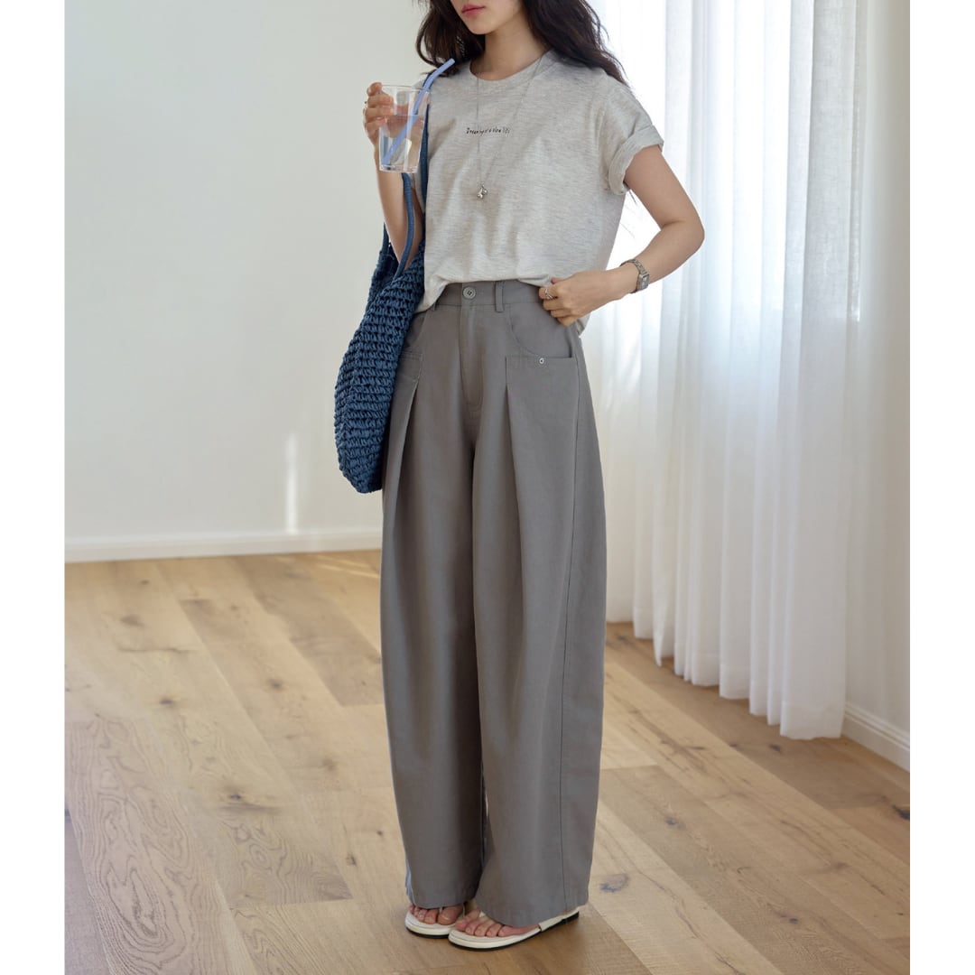 ゆったりとしたワイドシルエットが特徴のストレートパンツは、落ち感のあるラインで脚のラインを拾わず、リラックス感のある大人カジュアルな印象を演出します。