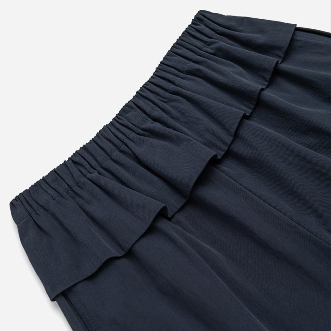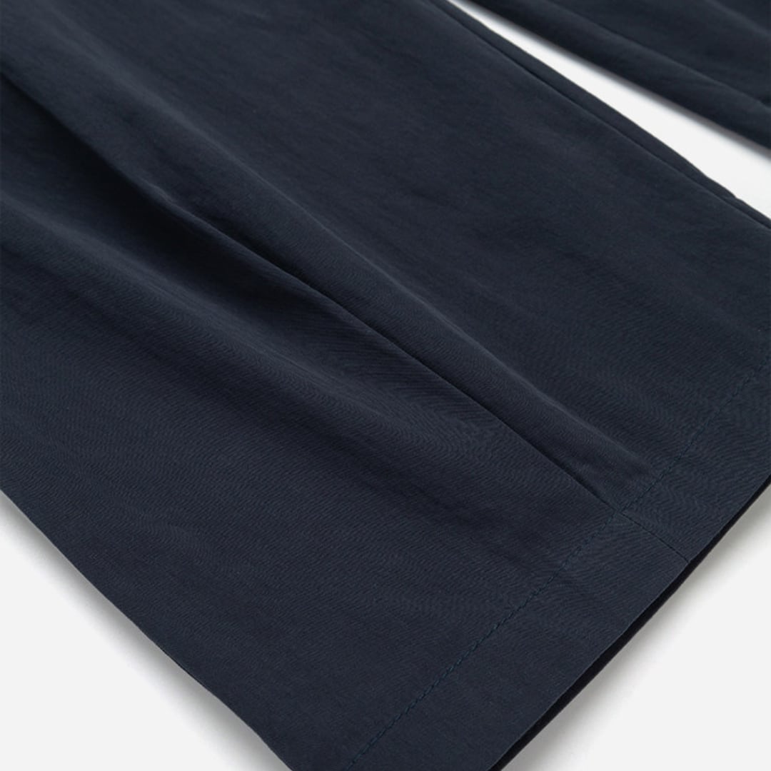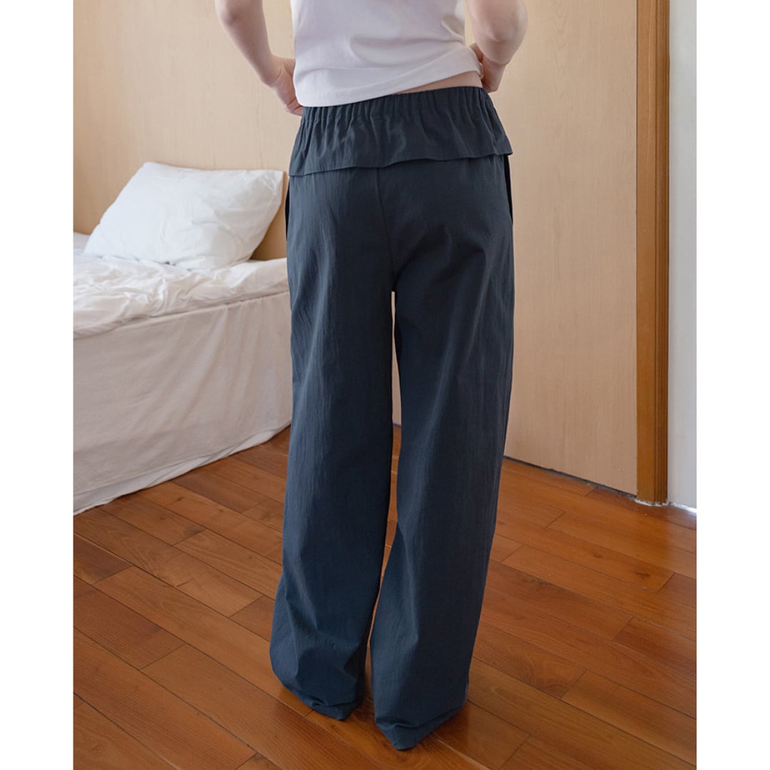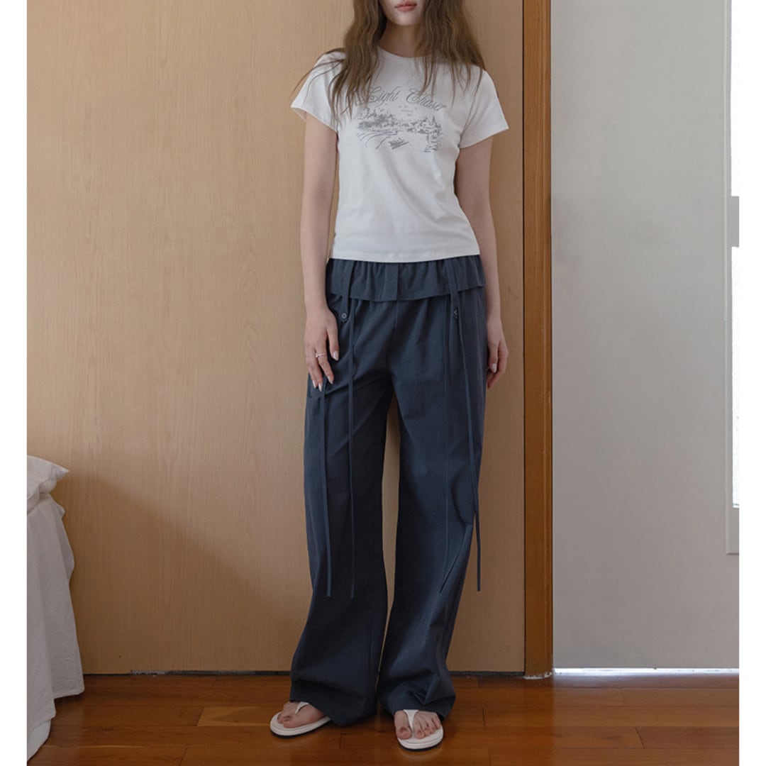 ウエストのドローストリングとゆったりとしたワイドシルエットが特徴の、リラックス感あふれるカジュアルパンツ。