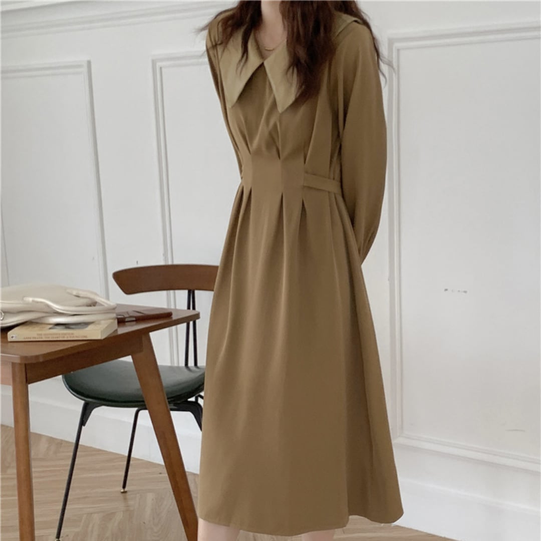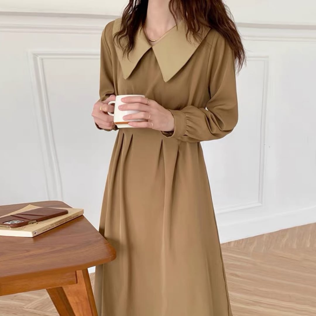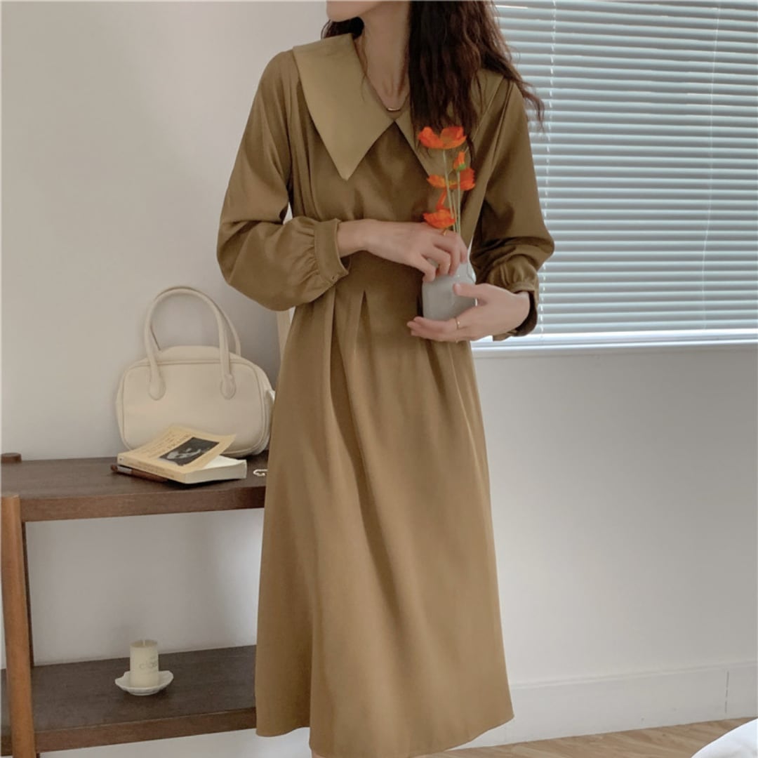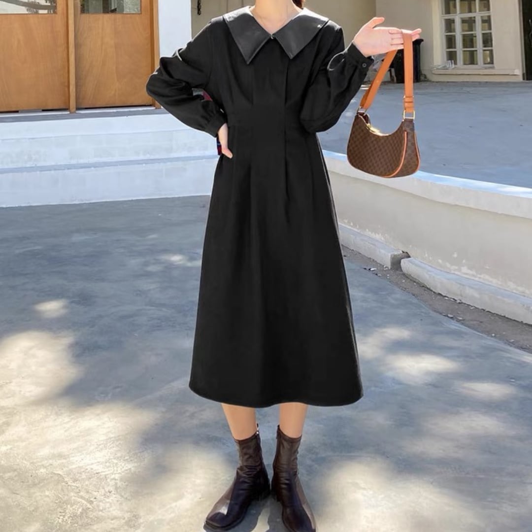 大きめの襟とバックリボンがレトロ可愛いワンピース。