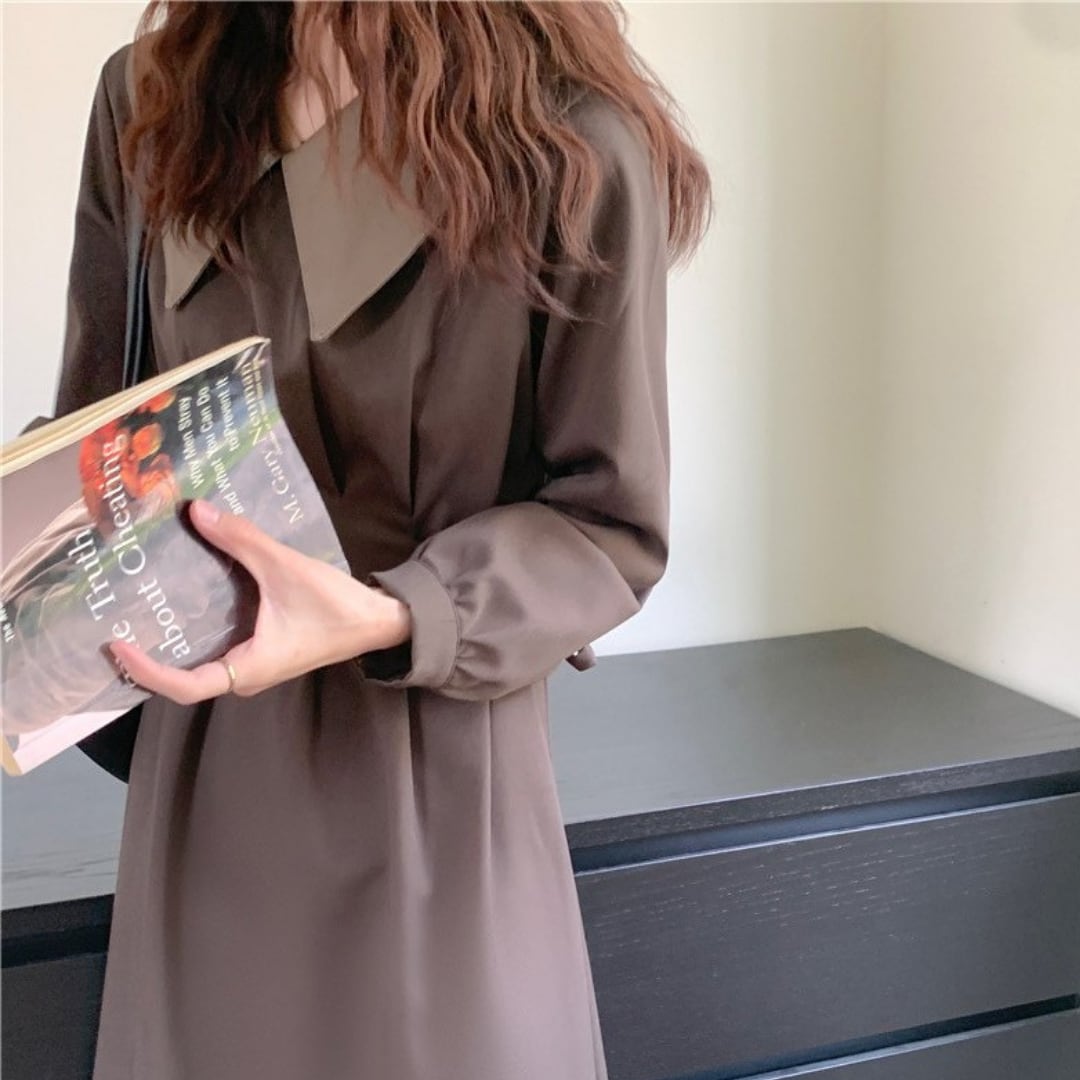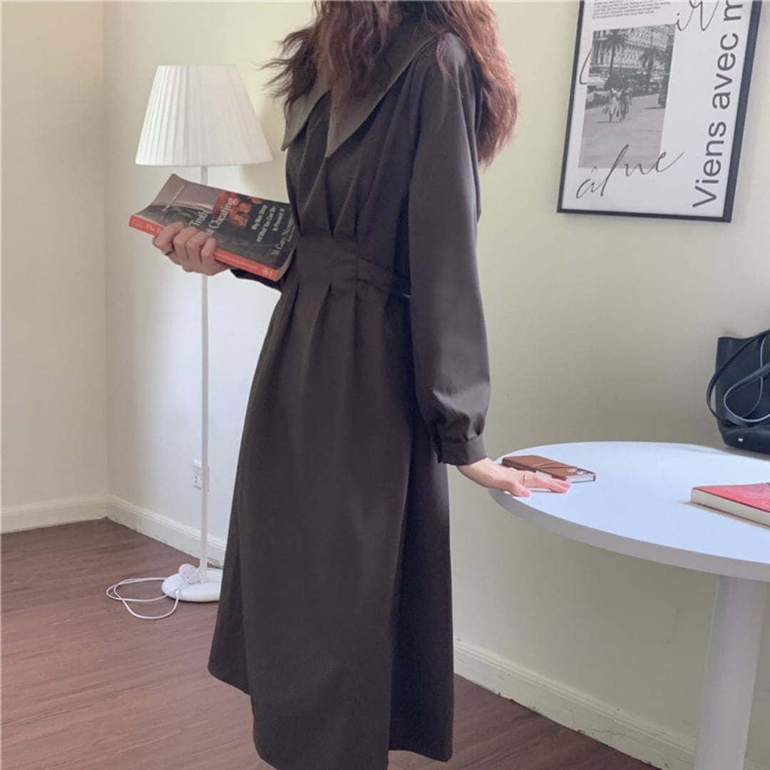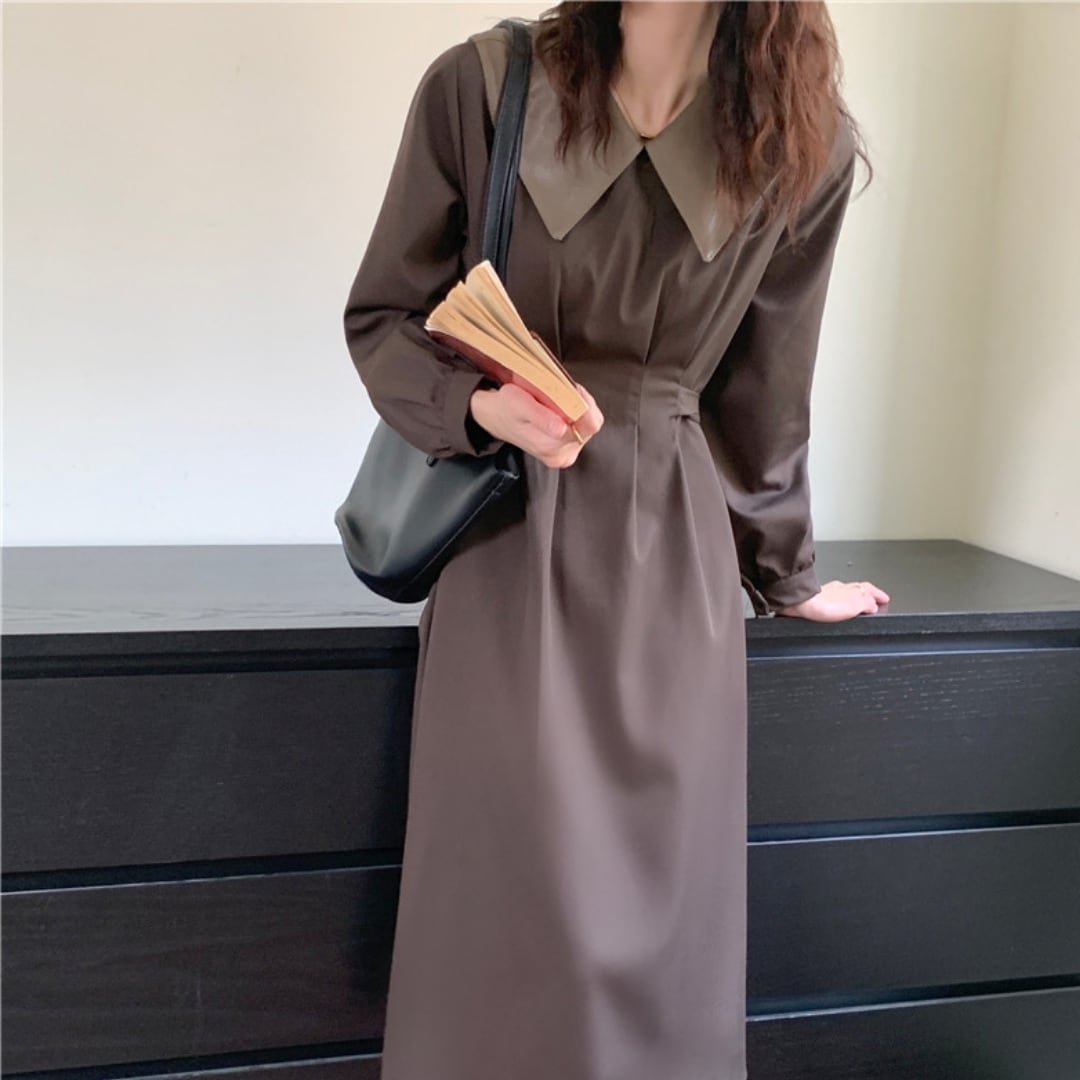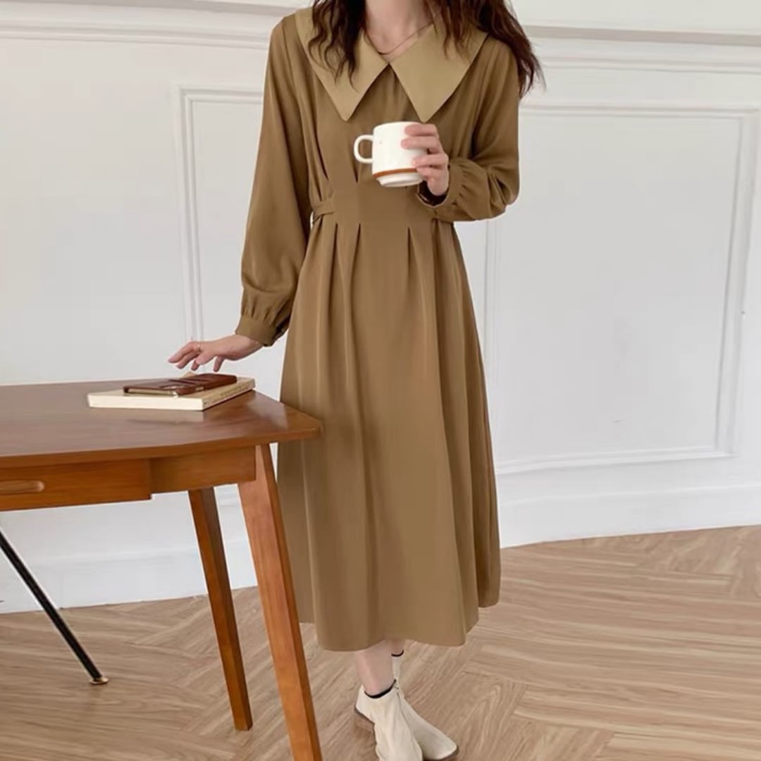 大きめの襟とバックリボンがレトロ可愛いワンピース。