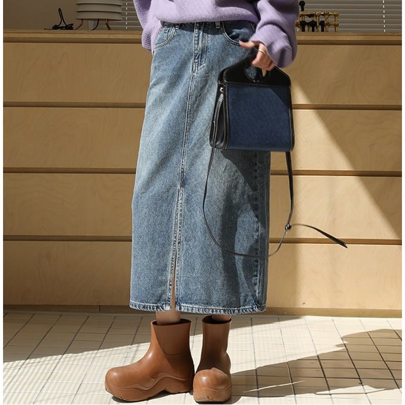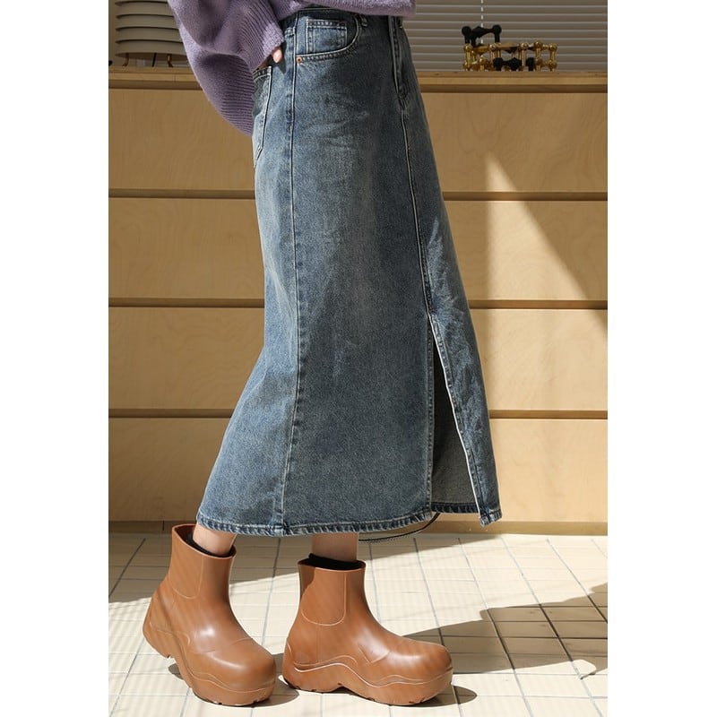 high waist denim skirt