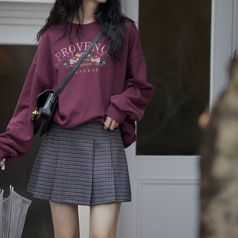 ヴィンテージ感あふれる刺繍入り長袖トレーナー。肩の位置を落としたドロップショルダーでオーバサイズな着こなしが楽しめます!お手持ちのボトムスと合わせやすくコーディネートに取り入れやすい定番アイテムです。