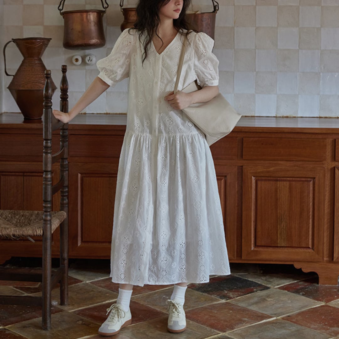 清楚な雰囲気漂う花柄シフォンワンピースは、シンプルの中に可愛らしさをプラスしたヘルシーなデザインが魅力◎