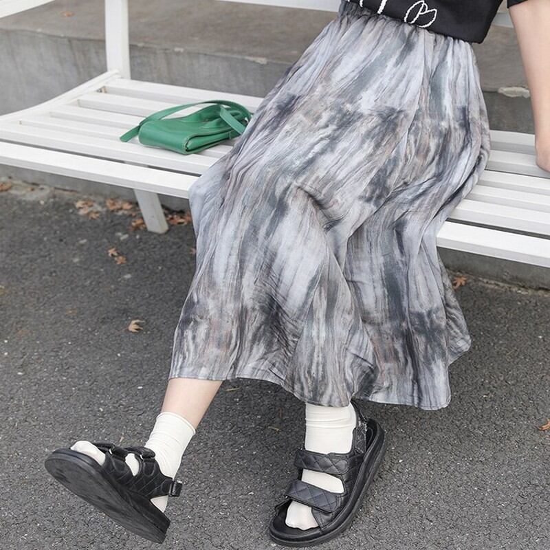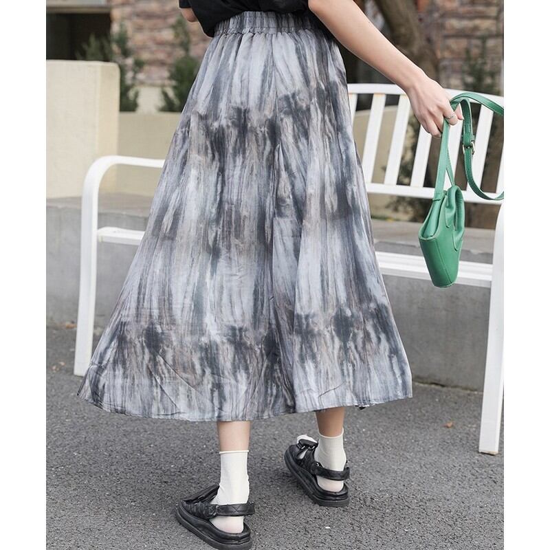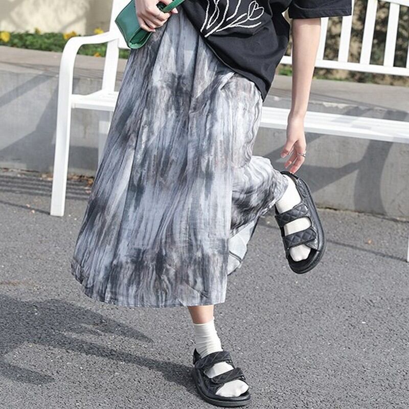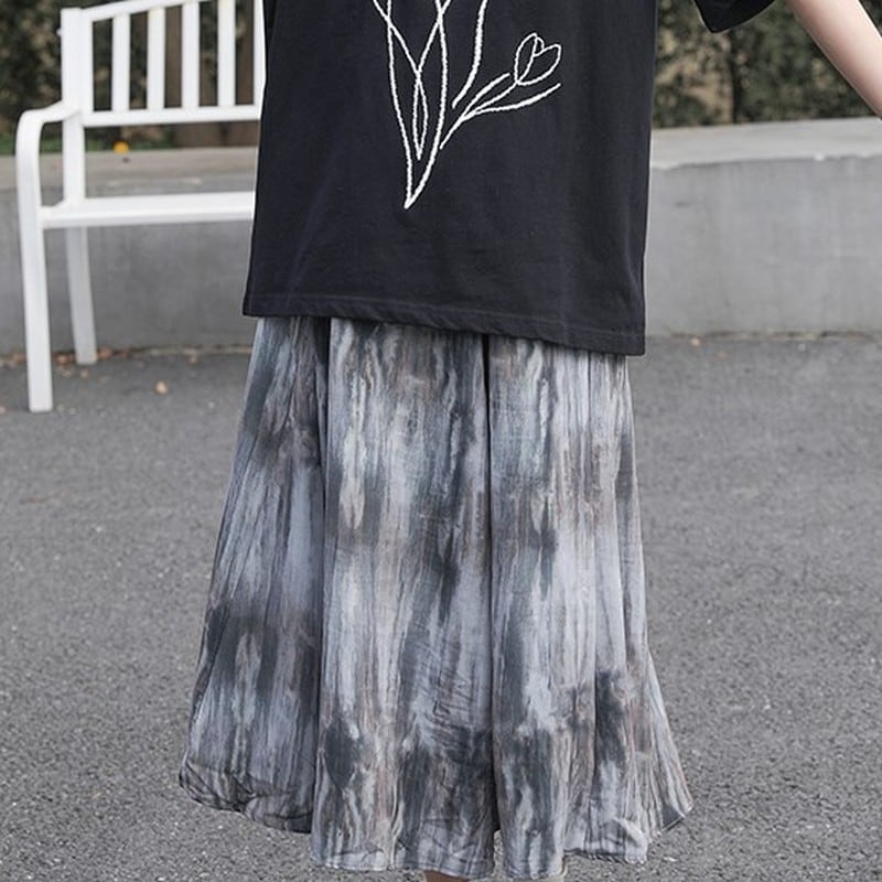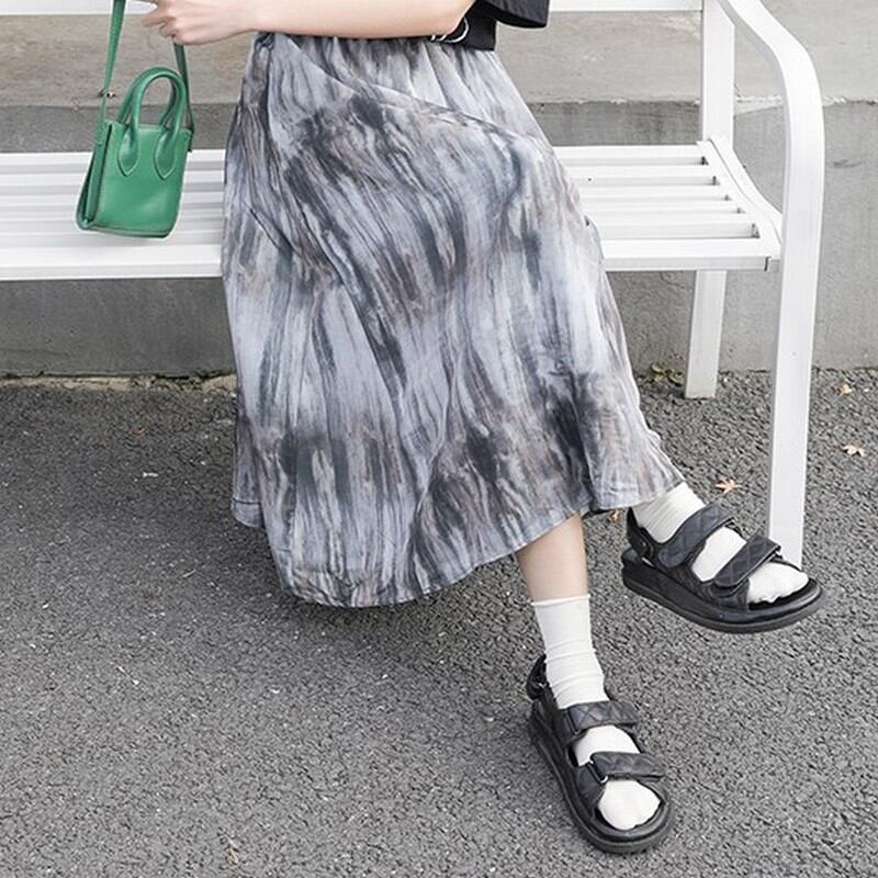 モダンなプリント入りロングスカート。ふわっと程よく裾広がりなAラインシルエット。ハイウエストでトップスをインしたスタイリングも楽しめます!
