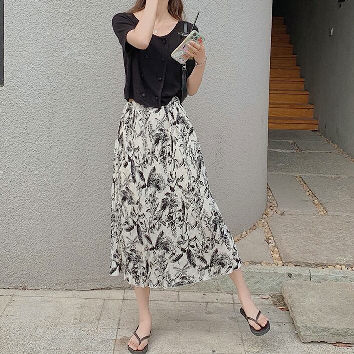 retro flower pleated skirt
