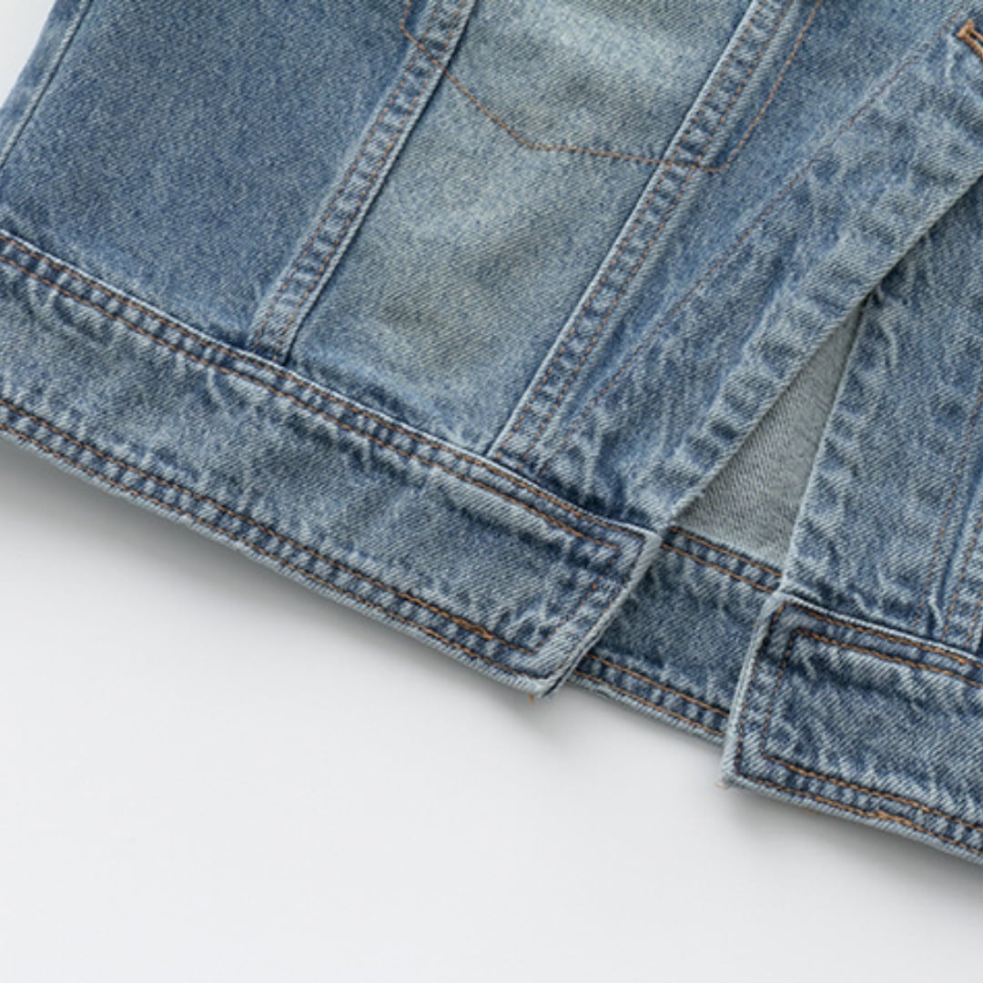 シンプルで使いやすいデザインが特徴のショートカジュアルデニムジャケットです。