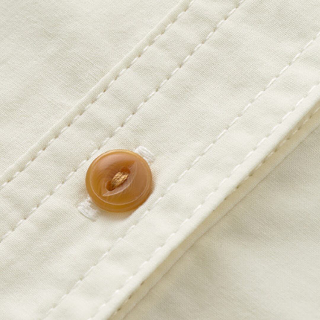 シンプルなデザインながらも、袖口や襟元に施された細やかなディテールがアクセント。清潔感ある白色でコーディネートを引き締め、シックな印象を与えます。オフィスカジュアルからデートまで幅広いシーンで活躍する一枚です。