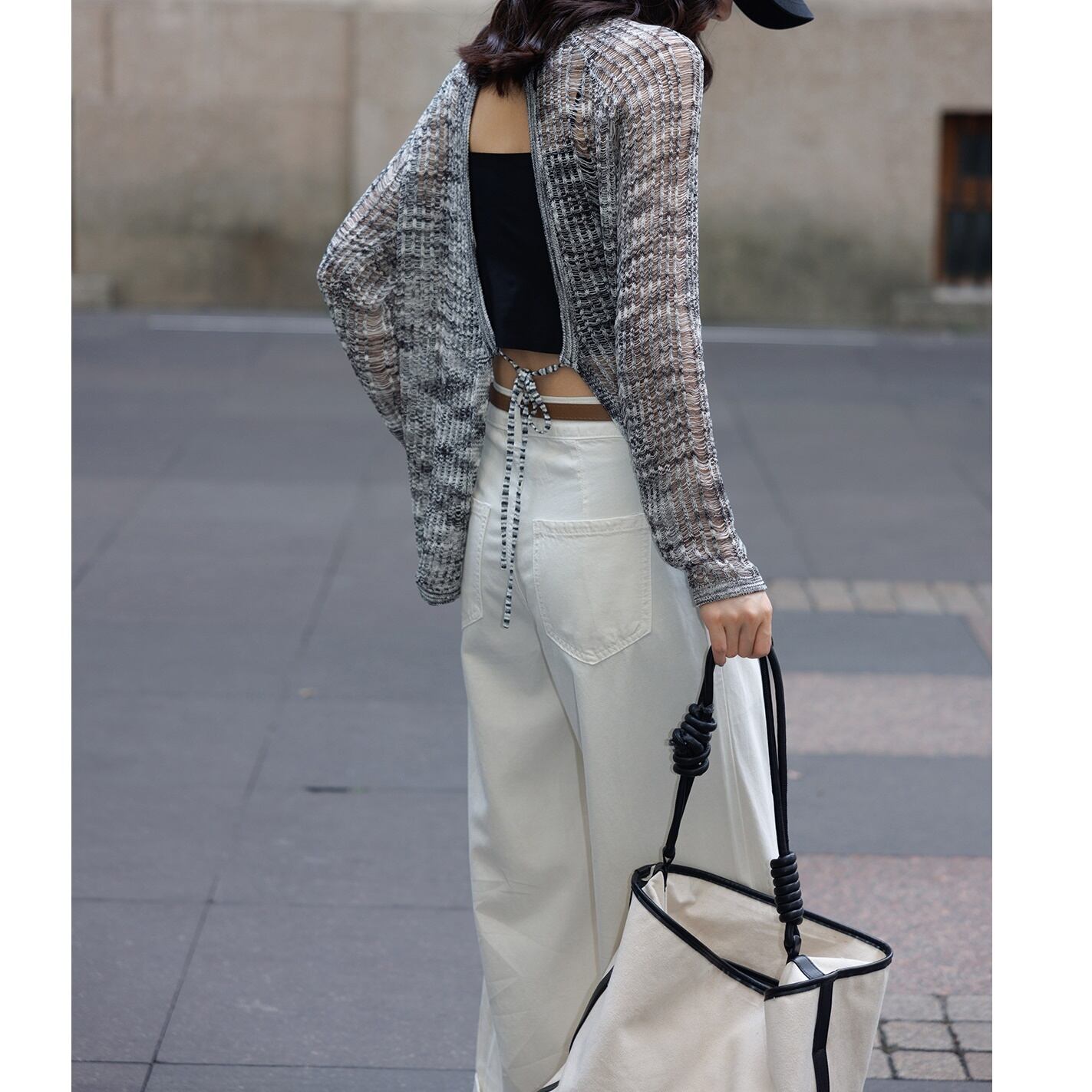 紫外線から肌を守り、透け感のあるメッシュ素材で涼しげな印象を演出します。