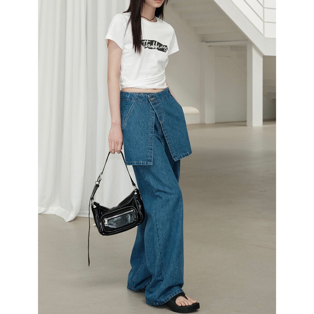 ウエストからヒップラインにかけてのゆとりと、裾のモップデザインが個性的な一本。シンプルなトップスとの相性も抜群で、おしゃれ上級者におすすめです。カジュアルな着こなしにアクセントを加えたい方にぴったりの一着です。