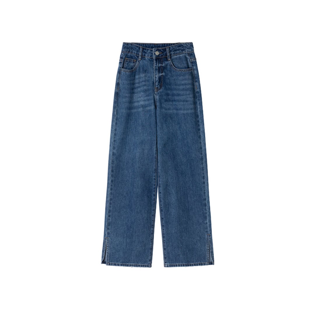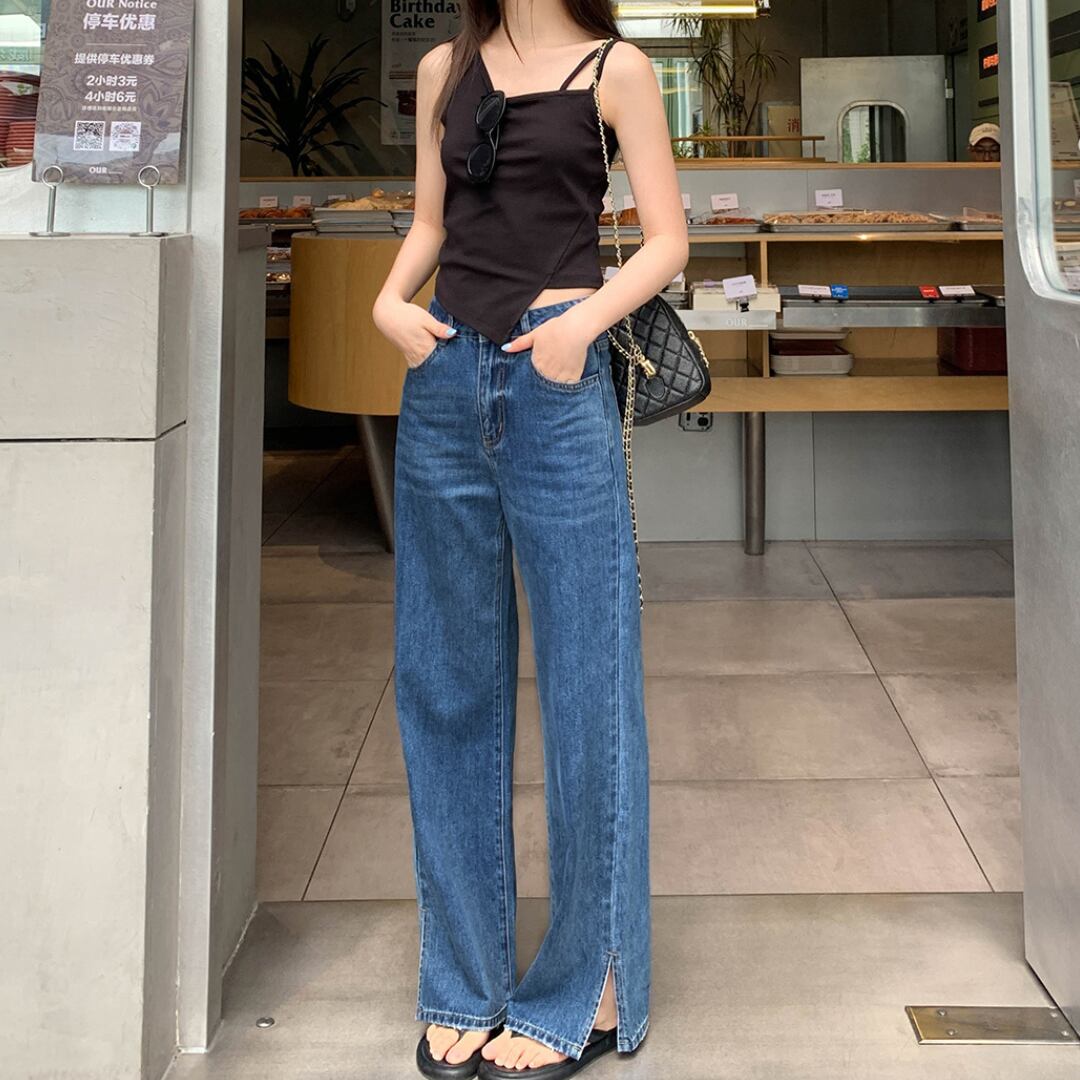 high waist straight slim slit jeans