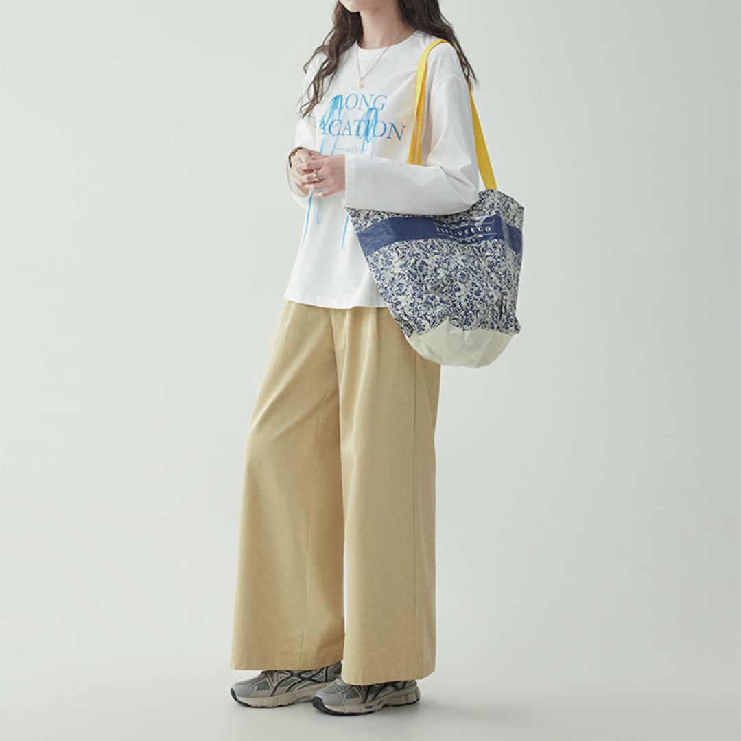 スタイリッシュなレタープリントと可愛らしいリボンがポイント。長袖なので、春先から秋口まで幅広く着回せます。シンプルながらも遊び心あふれるデザインで、コーデのアクセントにピッタリです。