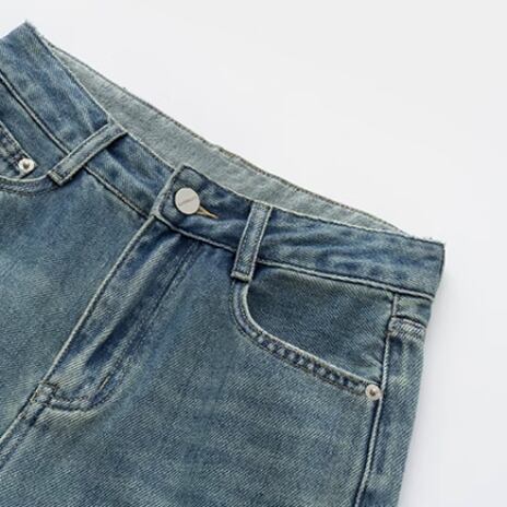 細見えするストレートデザインのフレアウォッシュドデニム。