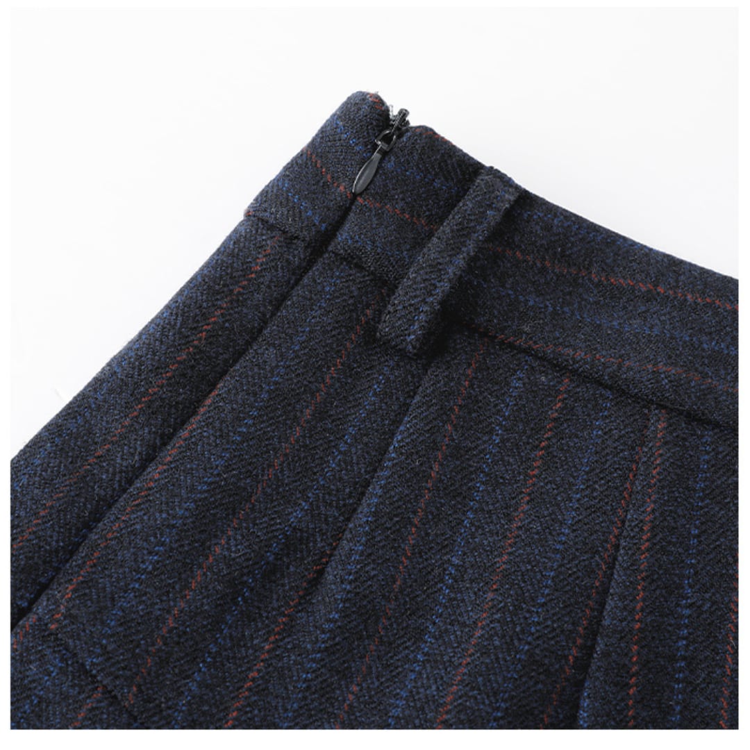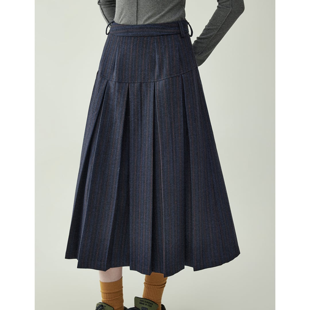 シンプルでありながら、レトロな魅力を持つブルーストライププリーツスカートです。エレガントなプリーツデザインが特徴で、さまざまなスタイルに合わせやすく、デイリーから特別な日まで幅広く活躍するアイテムです◎