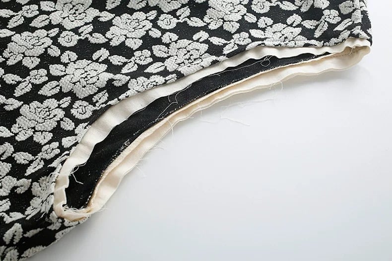 レトロかわいいバラ柄が施されたベストは、細部のディテールにまでこだわったアイテム。