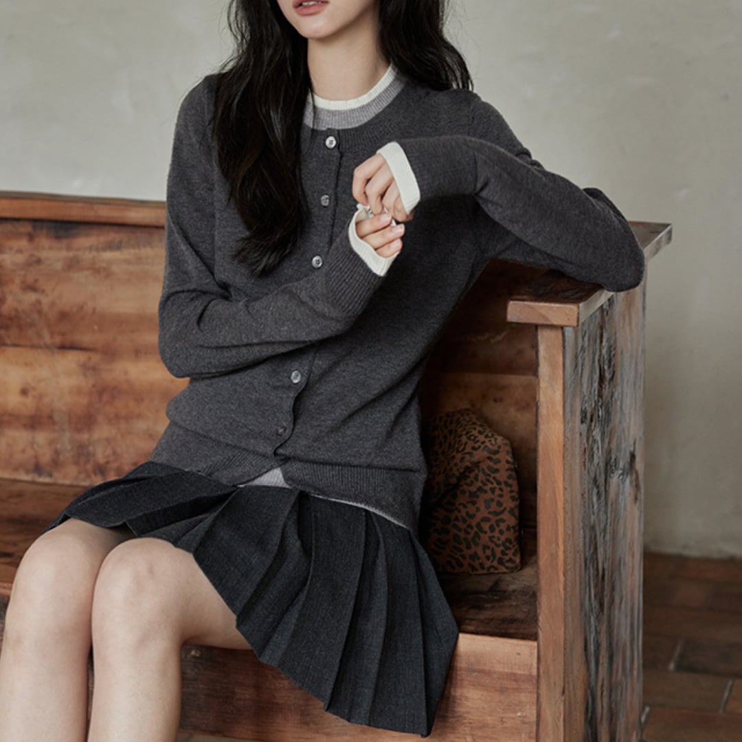 シックなトップフェイクツーピースセーターで、スタイリッシュな雰囲気を演出。