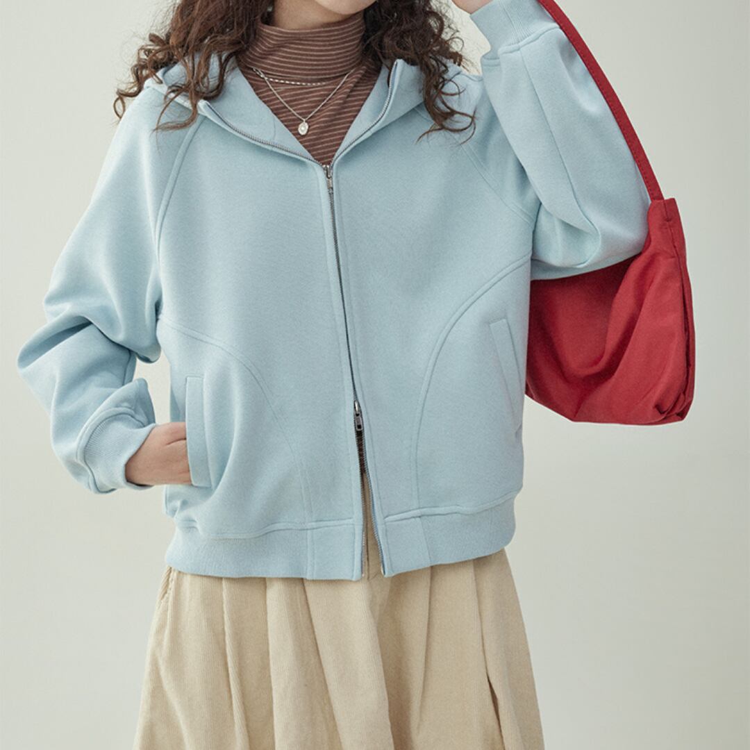 フードとダブルジッパーの仕様により、着こなしの幅が広がるポイントが特徴です。リラックスしたシルエットが、あなたのオシャレをさらに引き立てます。