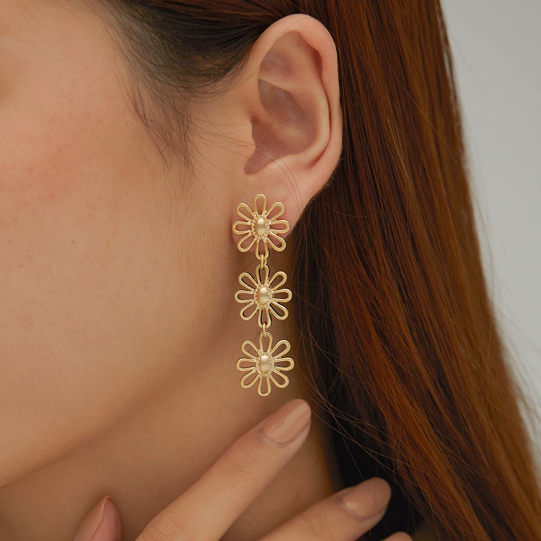 個性的なデザインとマットな風合いが魅力のマットゴールドタッセルフラワーピアスは、カジュアルなデイリーコーデから特別なイベントまで、幅広いシーンでのスタイルを引き立てます◎