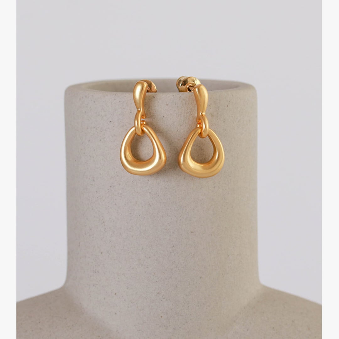個性的で洗練されたデザインが魅力のリドー粒状マットゴールドイヤリングは、存在感がありつつも上品な雰囲気を演出します。