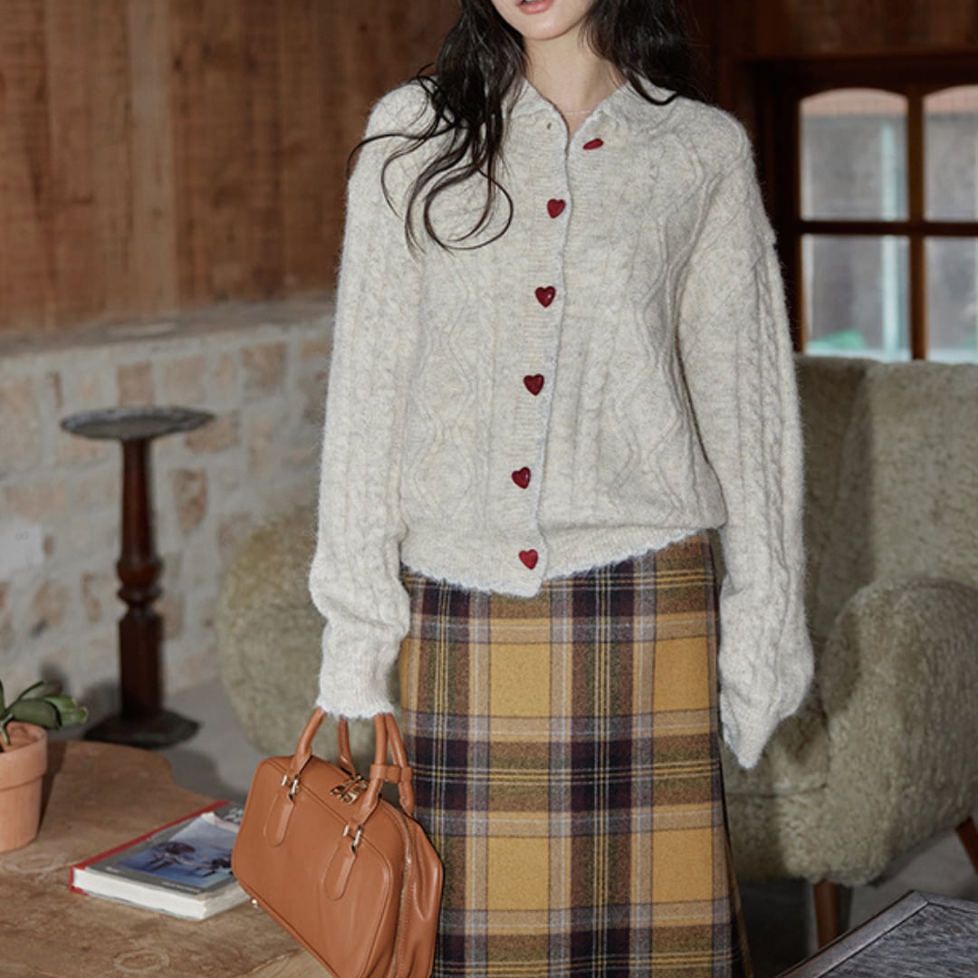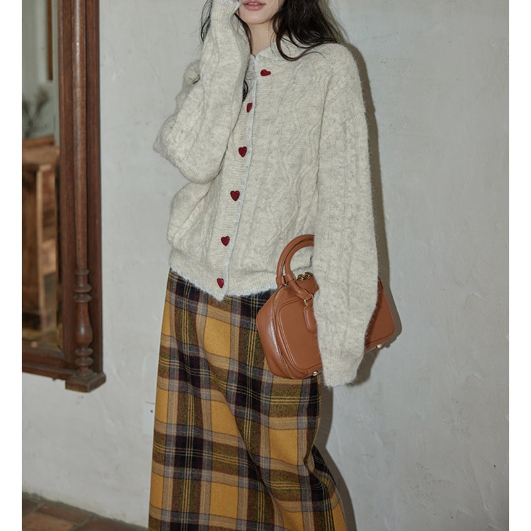 可愛らしく柔らかな雰囲気が魅力の、アイボリーのルーズニットセーターカーディガンです。
