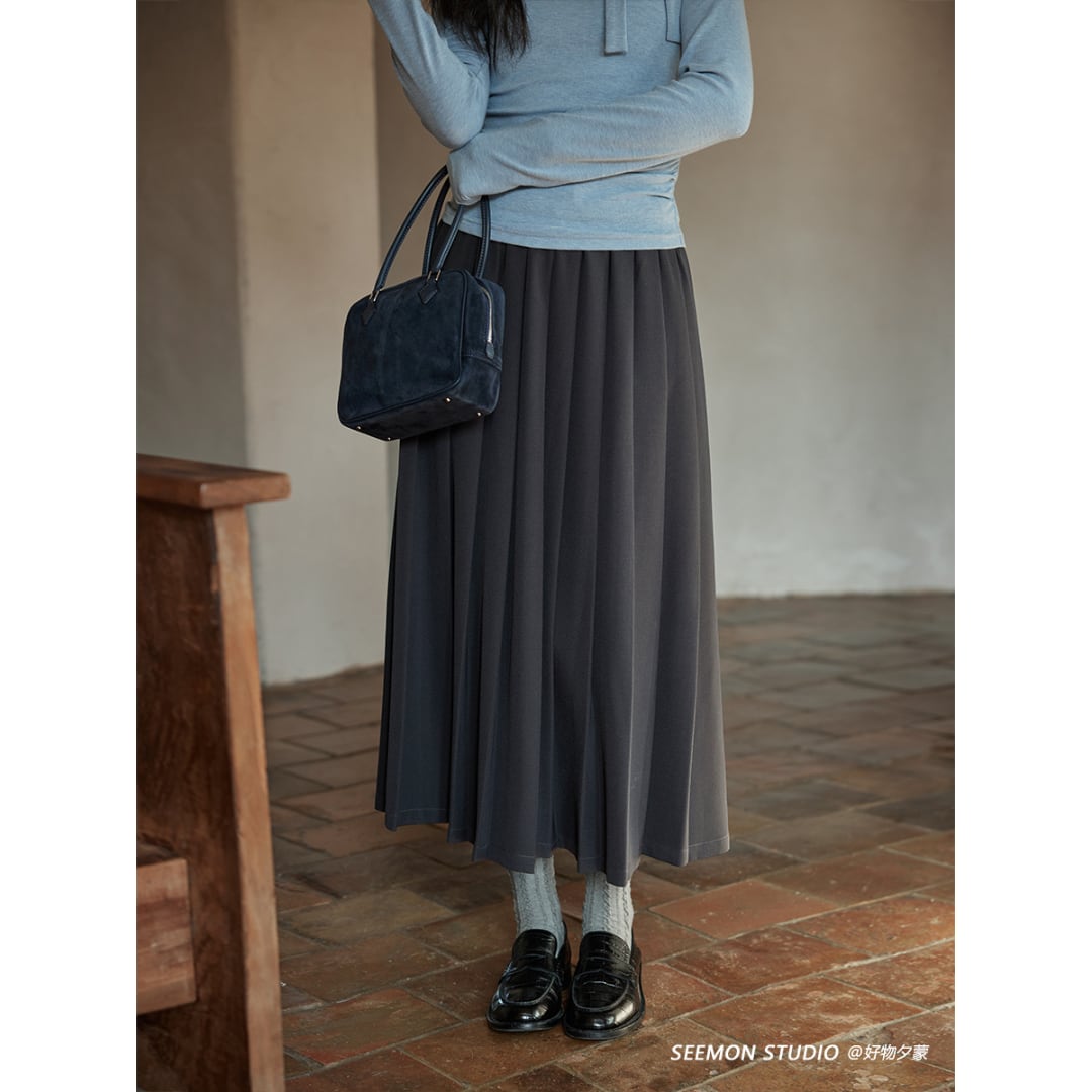 シンプルながらも、個性を引き立てるダークグレープリーツスカートです。