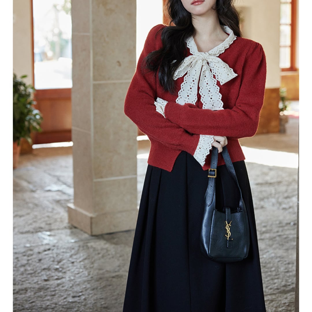 ベーシックでありながら、個性的な魅力を発揮する赤いセーターカーディガンです。アクセントとなる赤いステッチが、スタイルに華やかさを加え、カジュアルなデイリールックにもぴったりなアイテムです◎