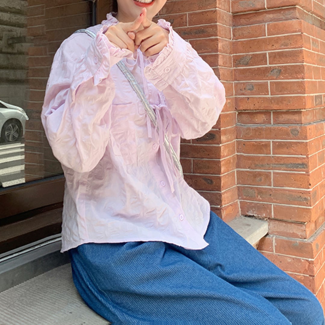 独特なバブルテクスチャと重厚感のあるレースカラーが、上品さを演出し、さまざまなスタイルに合わせやすい一着です◎