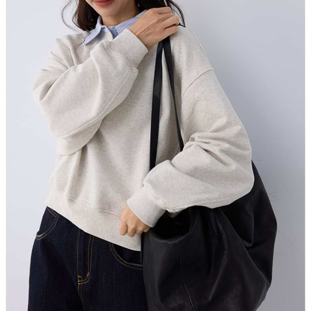 カジュアルなのにスタイリッシュ、ドローウィンドスウェット長袖トップスは、デイリーユースから特別な日まで幅広く対応できる一着です。